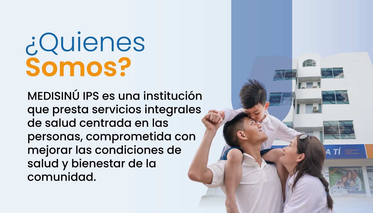 Medisinú se compromete a mejorar continuamente sus servicios de salud para satisfacer las necesidades y expectativas de sus clientes y usuarios a través de personal competente y motivado, con procedimientos y herramientas certificadas y seguras que permitan ofrecer un servicio ético, cálido y oportuno.